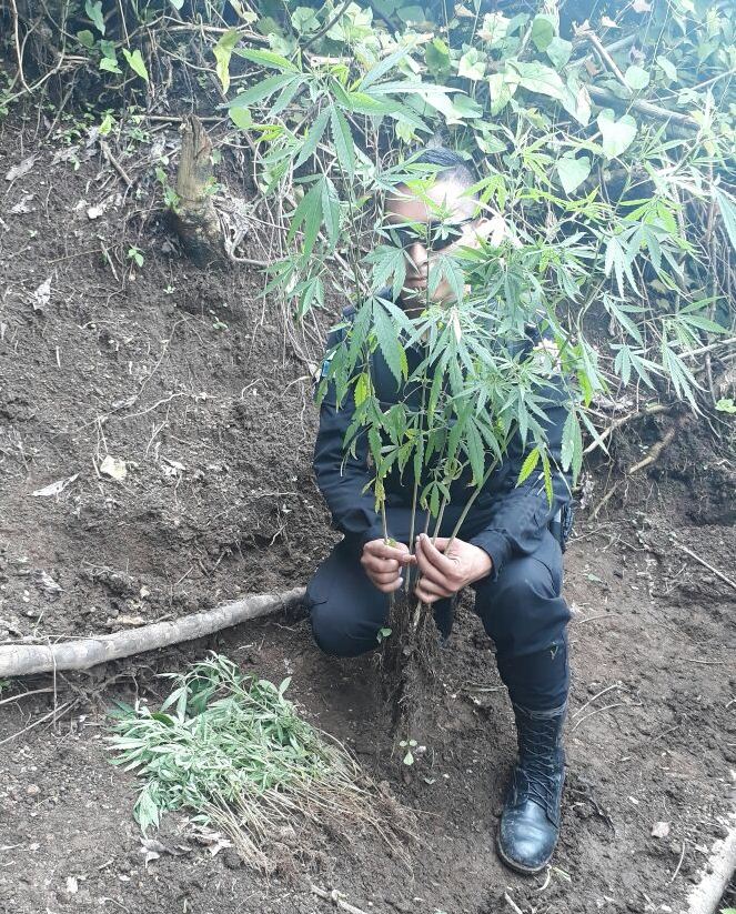 La Policía Nacional, localizó una plantación de 86 matas de mariguana en el departamento de Suchitepéquez.