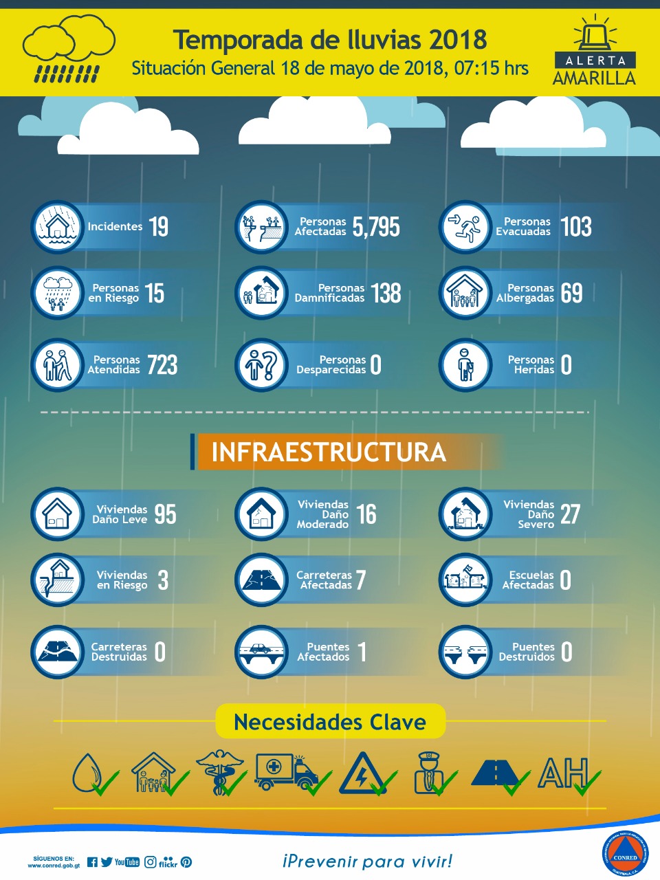 Las lluvias registradas durante los últimos días han afectado a un total de 5 mil 795 personas, dejando a 138 damnificadas y a 69 ubicadas en albergues, según las autoridades.