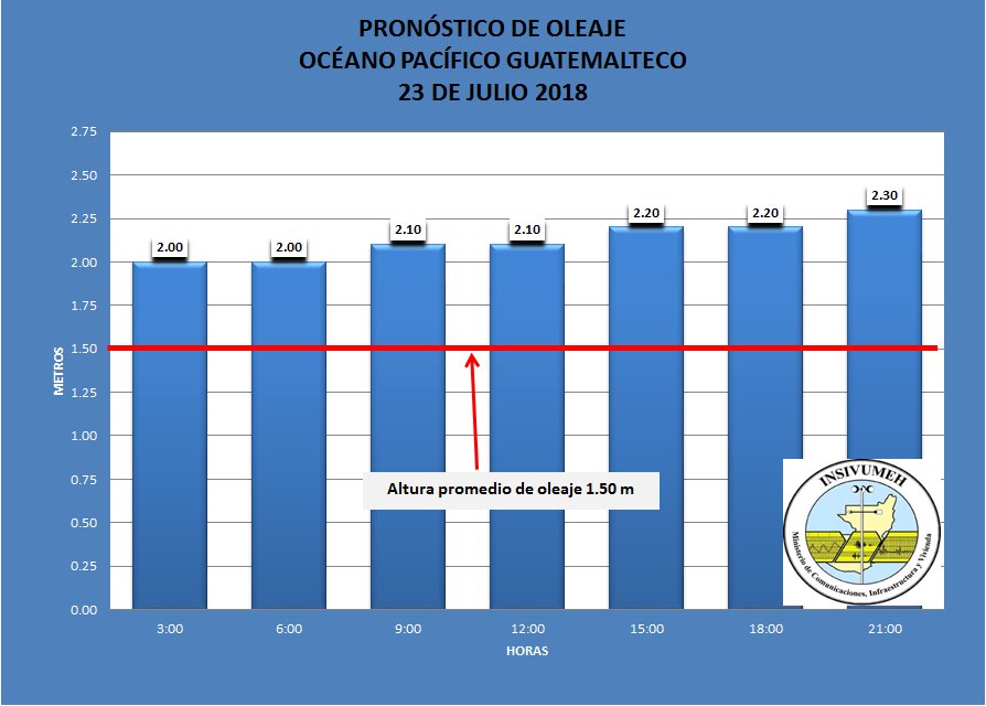 Según el Instituto Nacional de Sismología, Vulcanología, Meteorología e Hidrología (Insivumeh), este lunes las olas en el Pacífico llegarán hasta los 2.20 metros de altura.