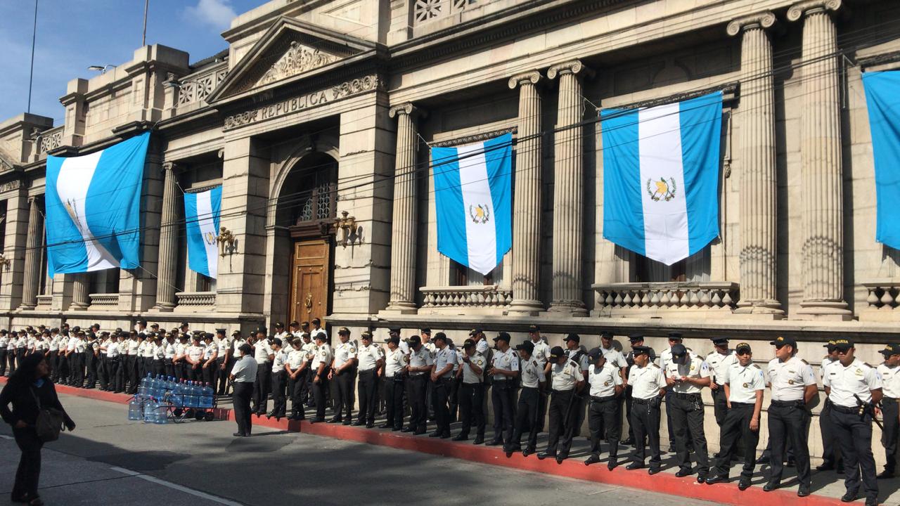 Debido a la manifestación, al menos 500 elementos de la Policía Nacional Civil (PNC) resguardaron los alrededores del Palacio Legislativo.