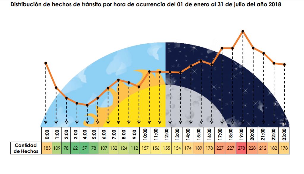 El último boletín compartido por el Departamento de Tránsito, de enero a julio de este año, los horarios donde más accidentes de tránsito se reportaron era durante la hora pico.