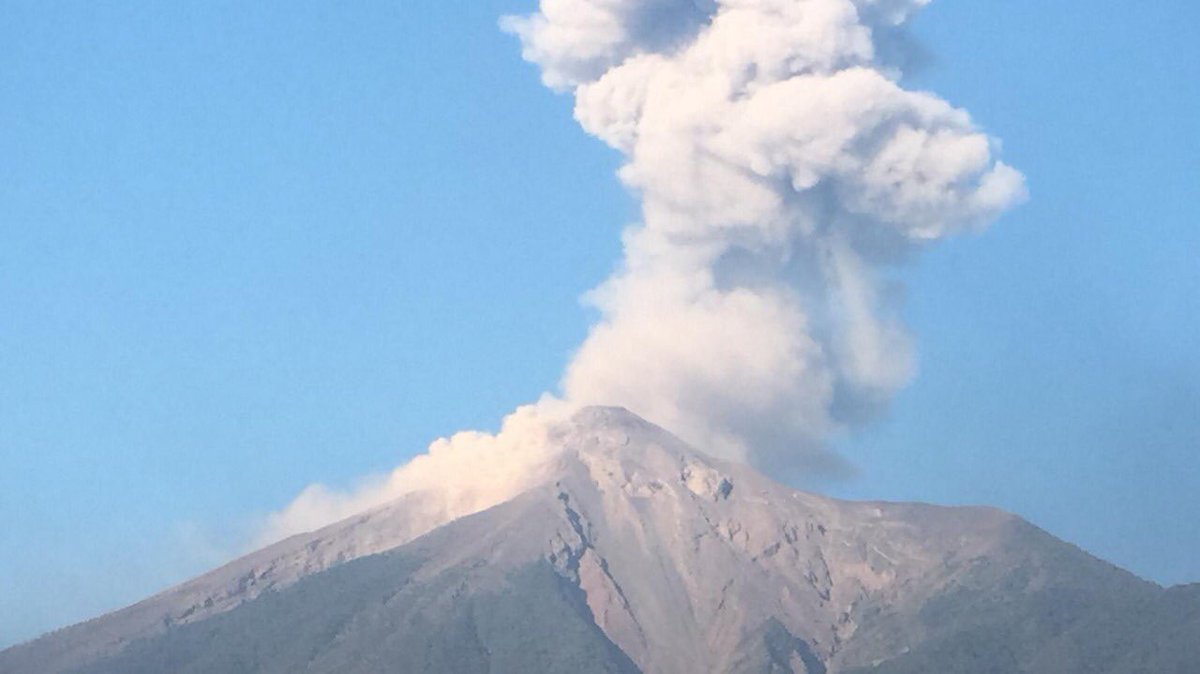 Insivumeh reporta que en el #EUVolcánDeFuego se han producido de 10 a 15 explosiones entre débiles a moderadas por hora, con columnas de ceniza que alcanzan los 5 mil metros de altura sobre el nivel del mar dispersándose hacia el Oeste y SurOeste. Foto: Conred. pic.twitter.com/Os8MVTu0UB