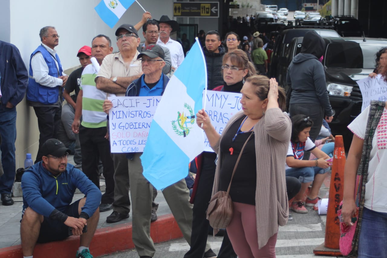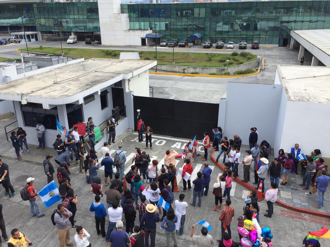 Decenas de personas se encuentran frente a las instalaciones del Aeropuerto rechazando la decisión del Gobierno de impedir el ingreso del investigador de la Comisión Internacional Contra la Impunidad en Guatemala (CICIG).