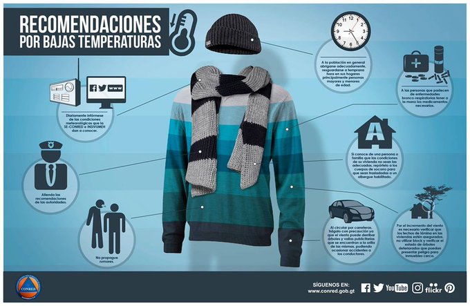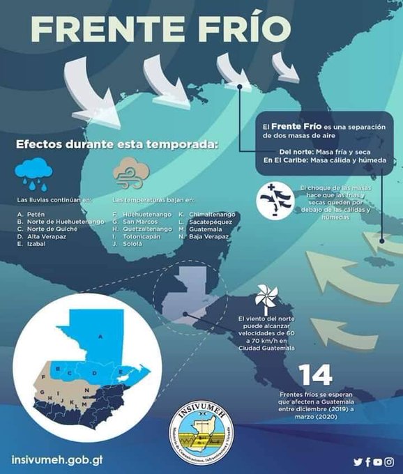 El Instituto Nacional de Sismología, Vulcanología, Meteorología e Hidrología (Insivumeh) prevé que el territorio sea afectado este fin de año y principios de 2020 por al menos 14 frentes fríos.