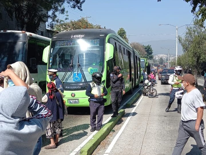 La Policía Municipal de Tránsito (PMT) de Villa Nueva informó que los carriles de circulación del Transmetro se mantienen bloqueados debido a esta situación.
