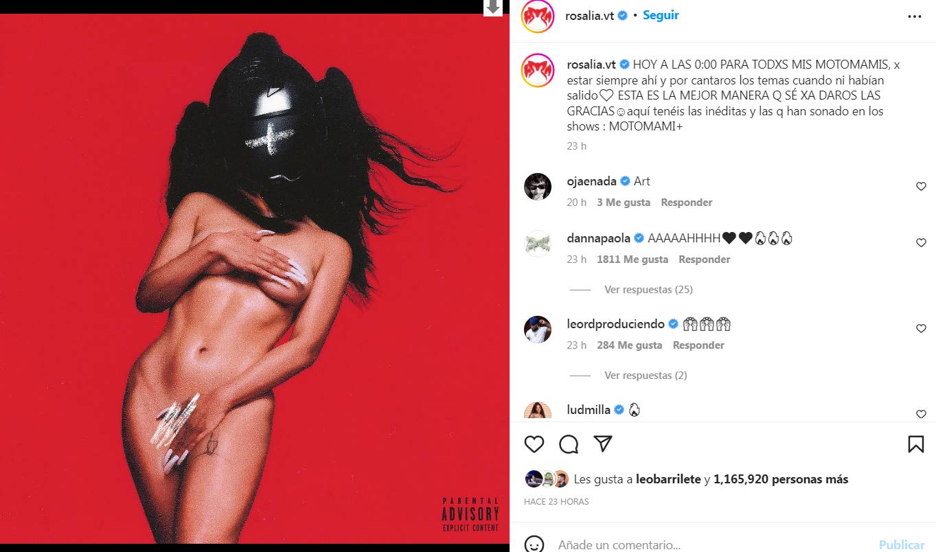 "HOY A LAS 0:00 PARA TODXS MIS MOTOMAMIS, x estar siempre ahí y por cantaros los temas cuando ni habían salido. ESTA ES LA MEJOR MANERA Q SÉ XA DAROS LAS GRACIAS aquí tenéis las inéditas y las q han sonado en los shows: MOTOMAMI+", escribió en su publicación.