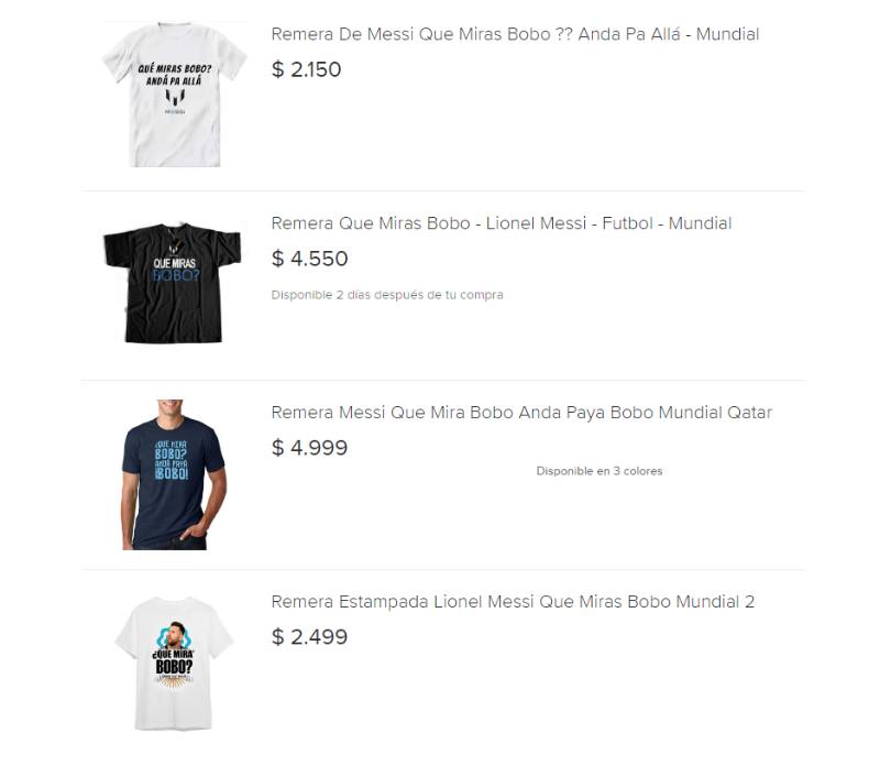 Las tazas empezaron a ser ofrecidas desde 1.600 pesos (unos 9 dólares), remeras a 2.900 pesos (16 dólares) y gorritas por 3.900 (22 dólares). Un tuit de varios segundos con el video del momento de la frase fue compartido 10.5 millones de veces el lunes. Un bombazo digno de uno de sus goles al ángulo.
