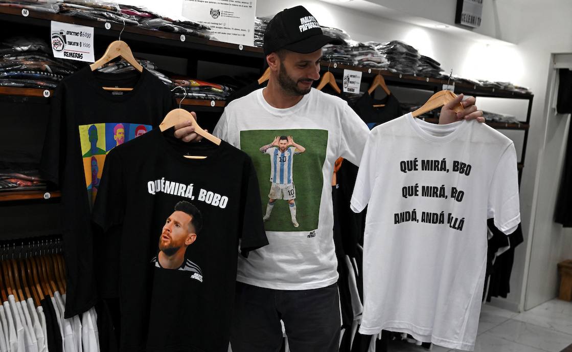 El orgullo de los hinchas argentinos por ver al fin a Lionel Messi en modo de líder carismático desató furor comercial por venta de productos con una frase pendenciera suya tras vencer a Países Bajos (4-3 en penaltis) en cuartos de final del Mundial de Qatar 2022. "¿Qué mirás, bobo? Andá payá", le disparó al capitán albiceleste a Wout Weghorst, autor de los goles para el empate (2-2) en los tiempos reglamentario y suplementario, en definición para el infarto.