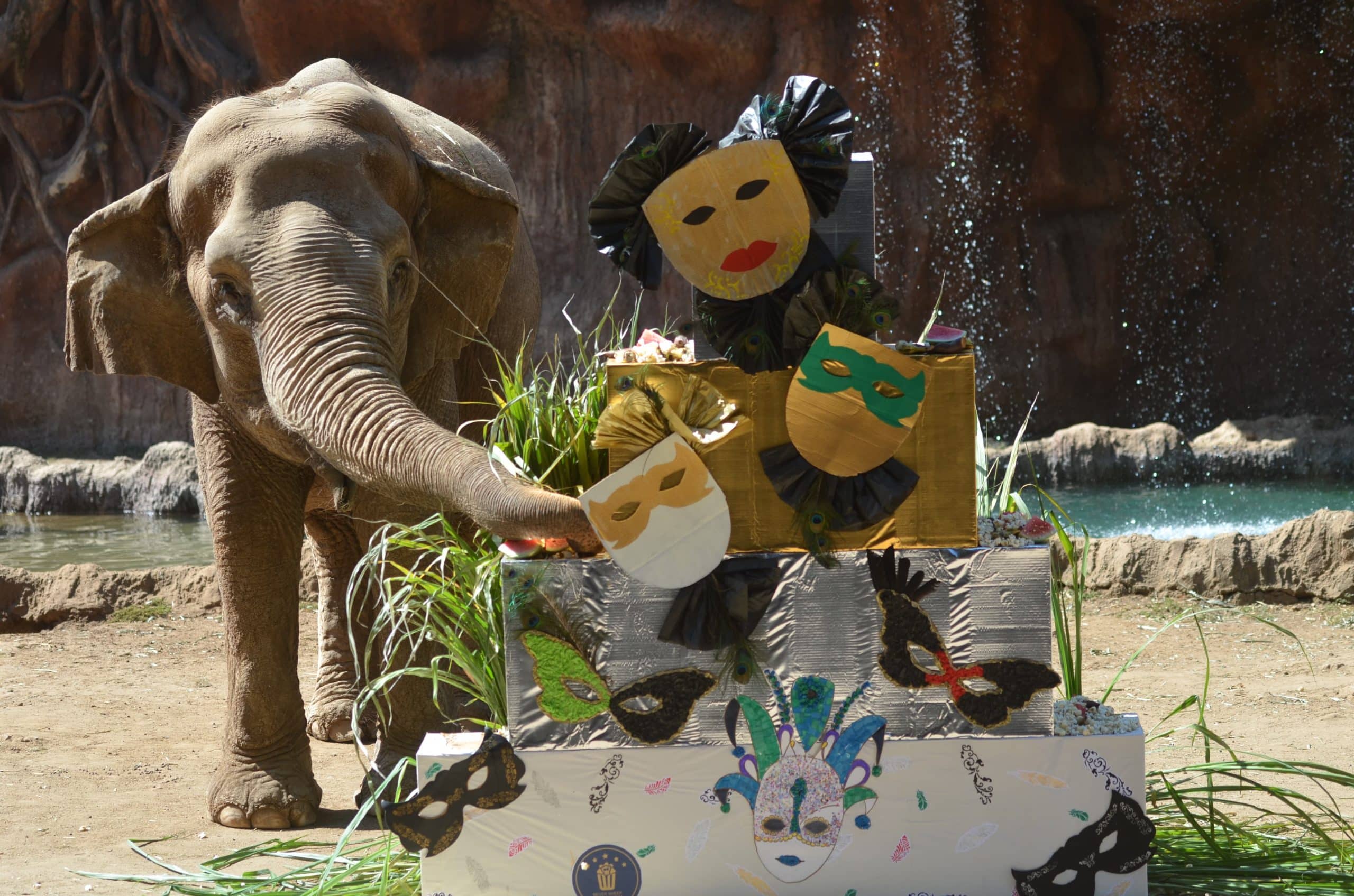 Desde muy temprano, trabajadores del zoológico La Aurora se dedicaron a preparar la decoración para vivir la fiesta de cumpleaños de Trompita, la elefanta que este sábado 17 de febrero de 2024 arribó a los 63 años de edad.