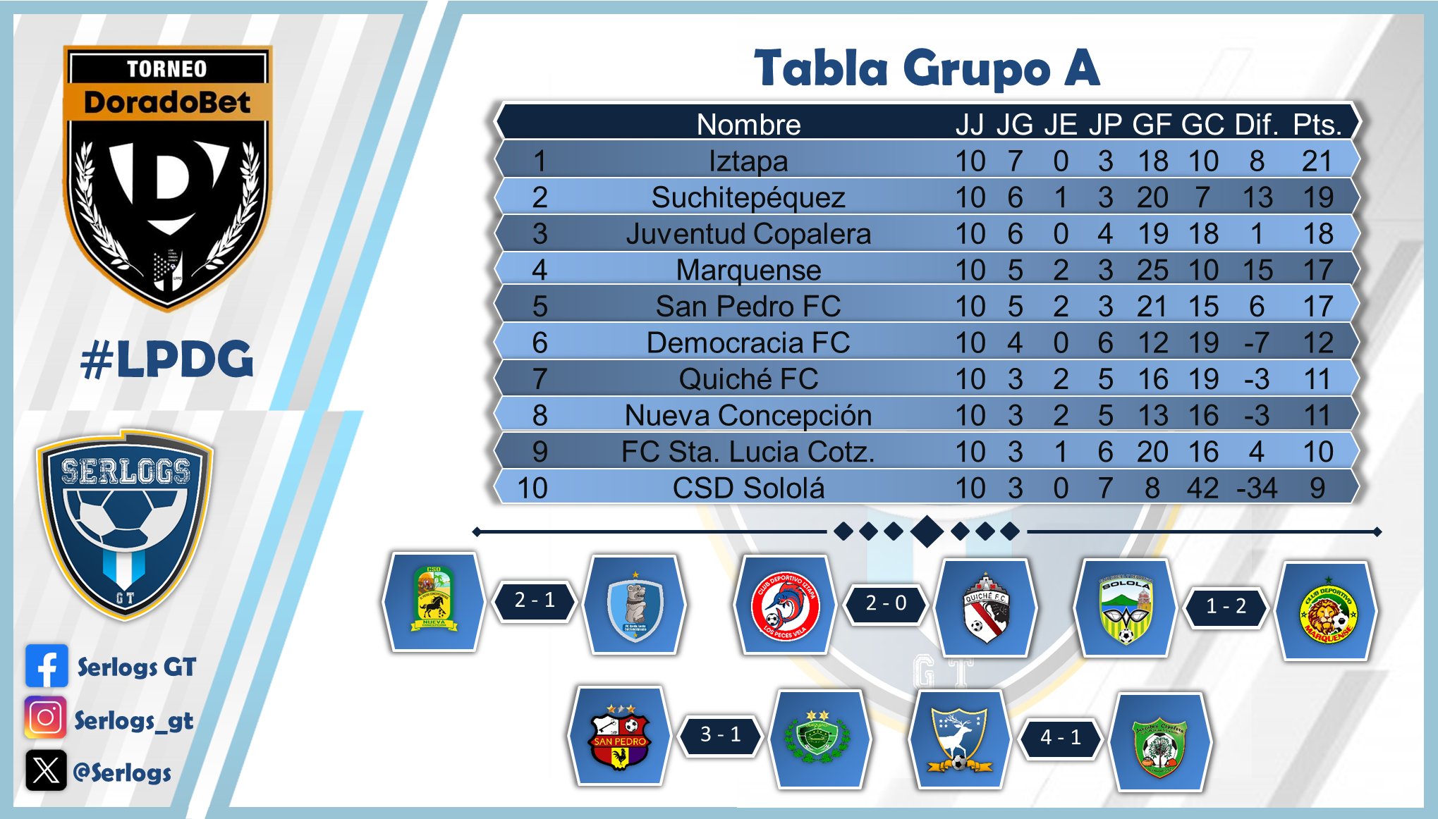 - Otros resultados de la Primera División: Deportivo Nueva Concepción 2-1 F. C. Santa Lucía Cotzumalguapa, Deportivo Sololá 1-2 Deportivo Marquense y San Pedro F. C. 3-1 Democracia F. C.