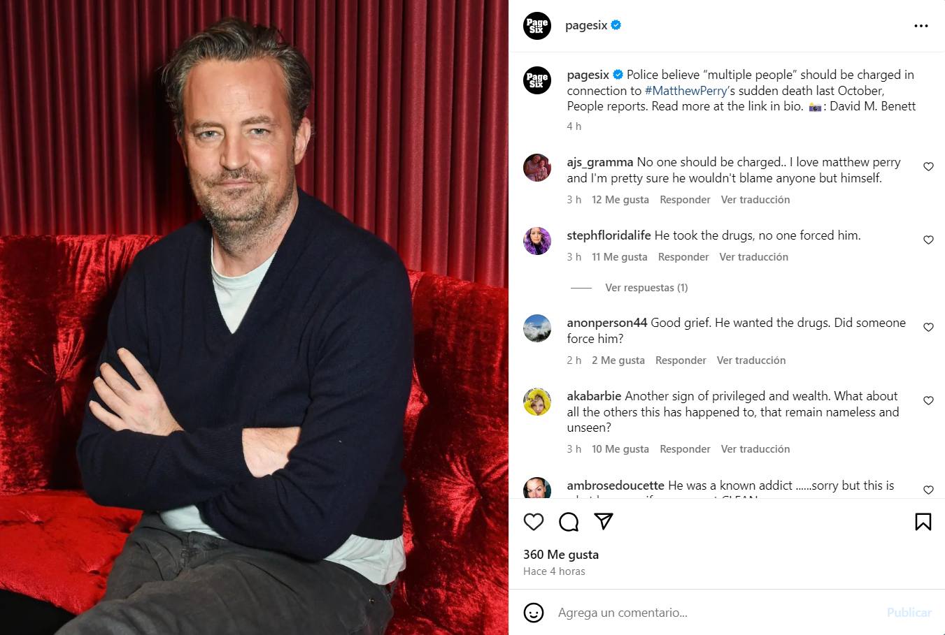 Las autoridades creen que varias personas deberían ser acusadas de la muerte de Matthew Perry en octubre pasado, así lo informó la revista People.