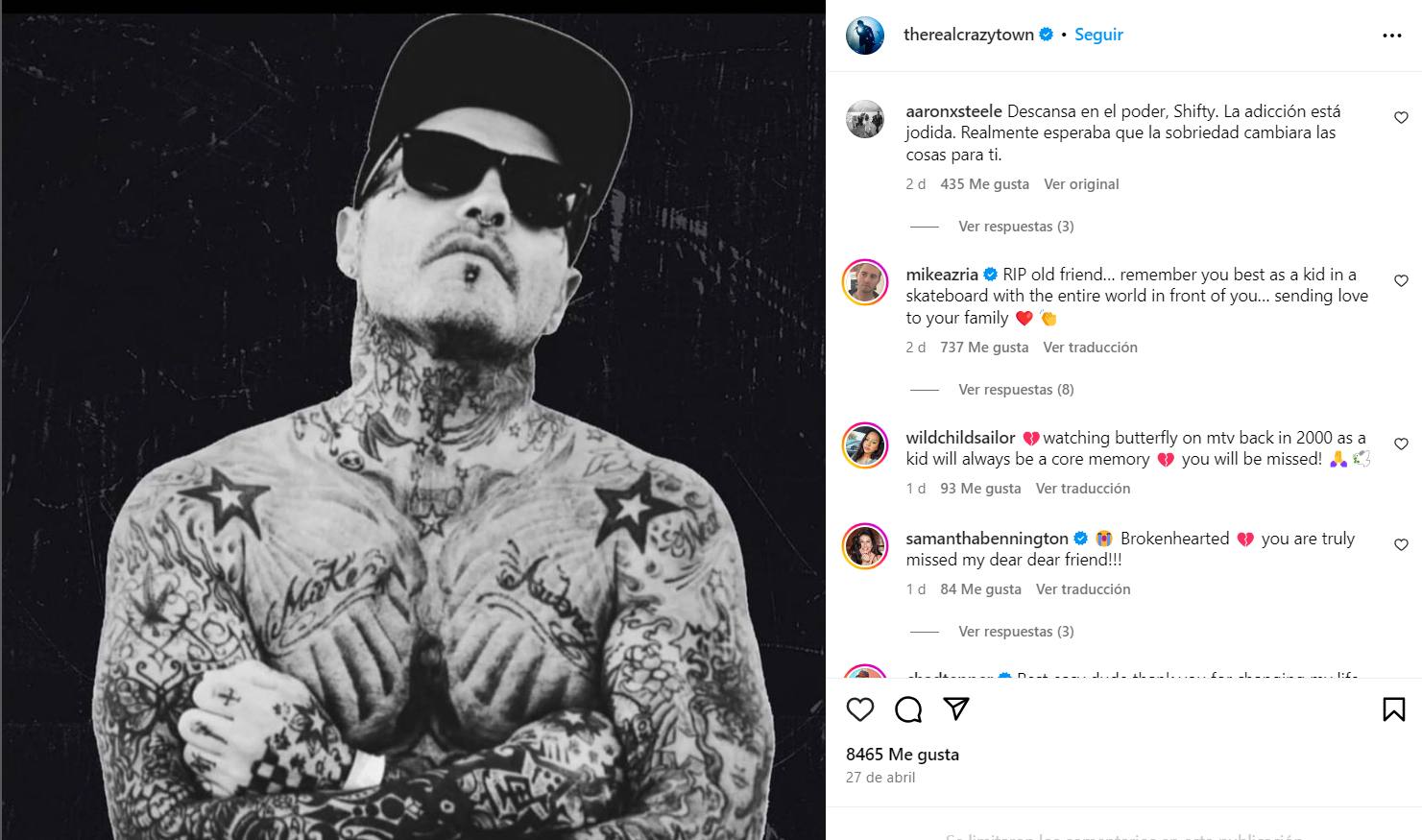 El vocalista de Crazy Town, conocido artísticamente como Shifty Shellshock, falleció el lunes a los 49 años.