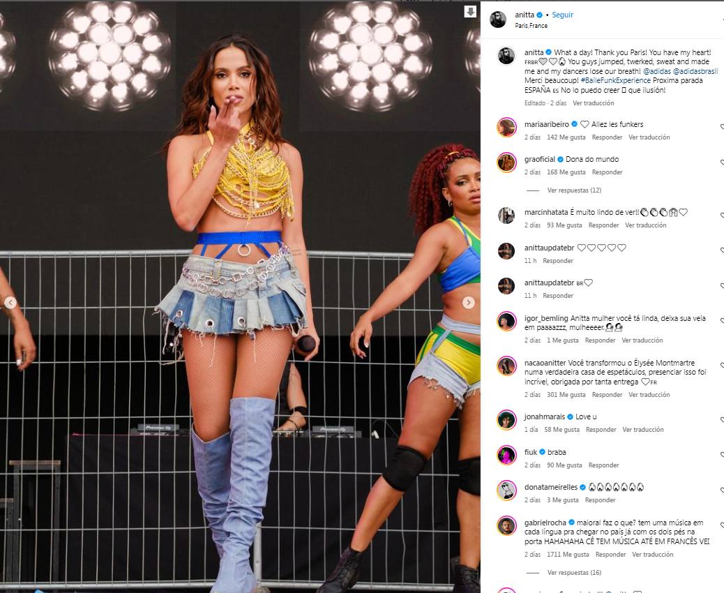 Tras su exitosa presentación en París, la brasileña compartió cómo se vivió su concierto en esa gran ciudad y muchos elogiaron sus looks y el de sus bailarinas, pues demuestran el amor a la Selección de Brasil.