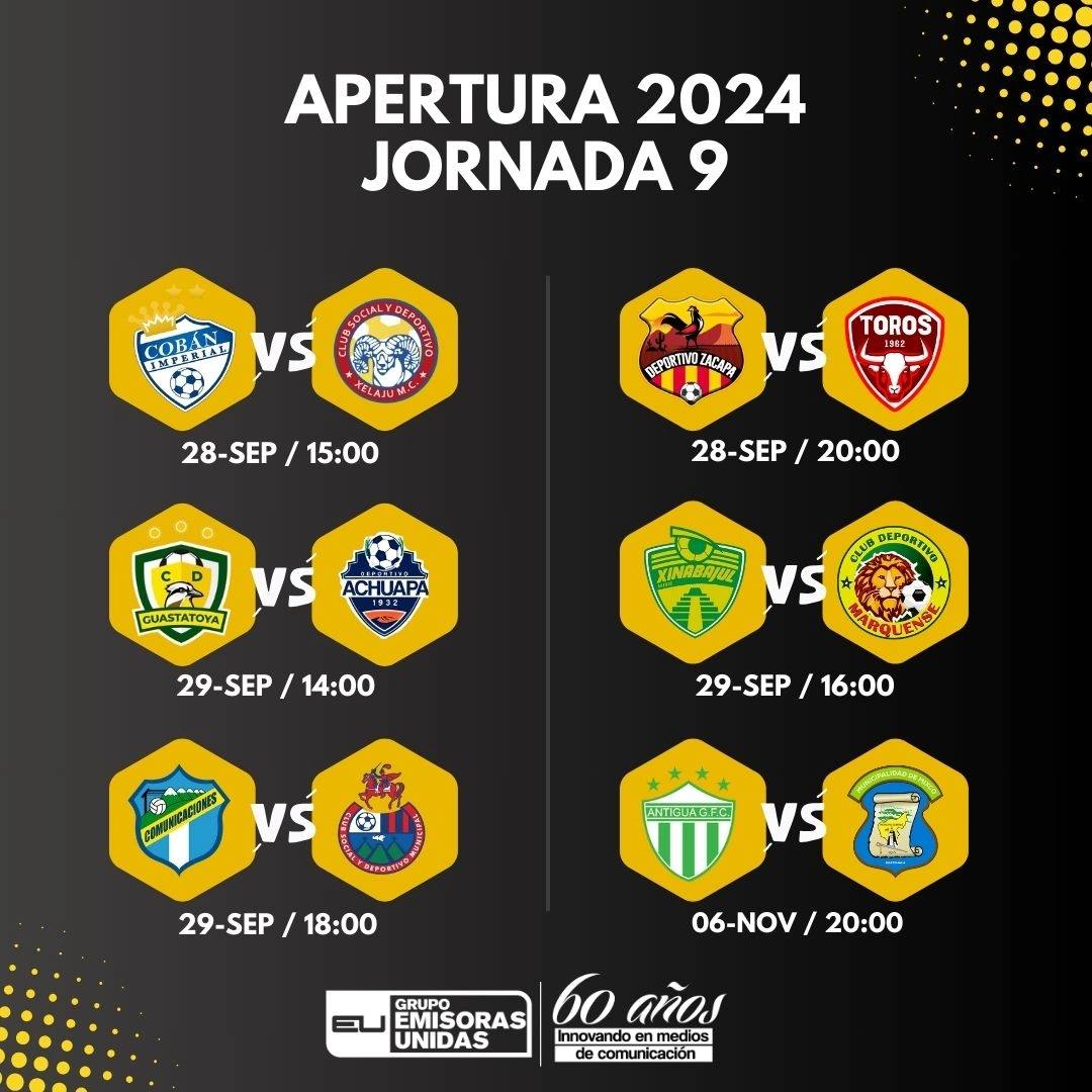 El domingo 29 de septiembre habrá tres duelos. Guastatoya le hará los honores al Deportivo Achuapa a las 14.00 horas en el estadio David Cordón Hichos.