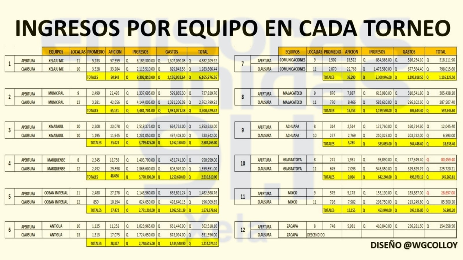 - En el Torneo Clausura 2025 ningún equipo tuvo pérdida económica en el ingreso de afición; en el Apertura 2024 los clubes con pérdidas fueron Guastatoya y Mixco