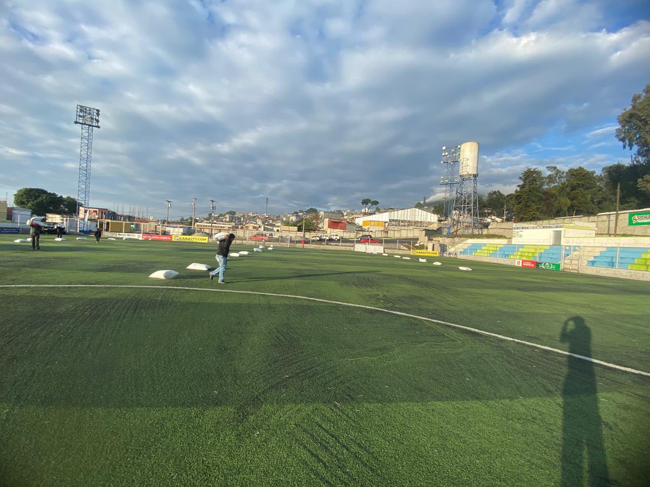 A través de sus redes sociales, el alcalde de Mixco y presidente del club, Neto Bran, compartió imágenes del avance de los trabajos. En las fotografías se observa a personal de la Municipalidad de Mixco realizando mantenimiento en el caucho de la gramilla sintética del recinto. Según detalló el jefe edil, se trata de labores de restauración y mantenimiento necesarias para garantizar un campo de juego en condiciones óptimas para la competencia profesional.