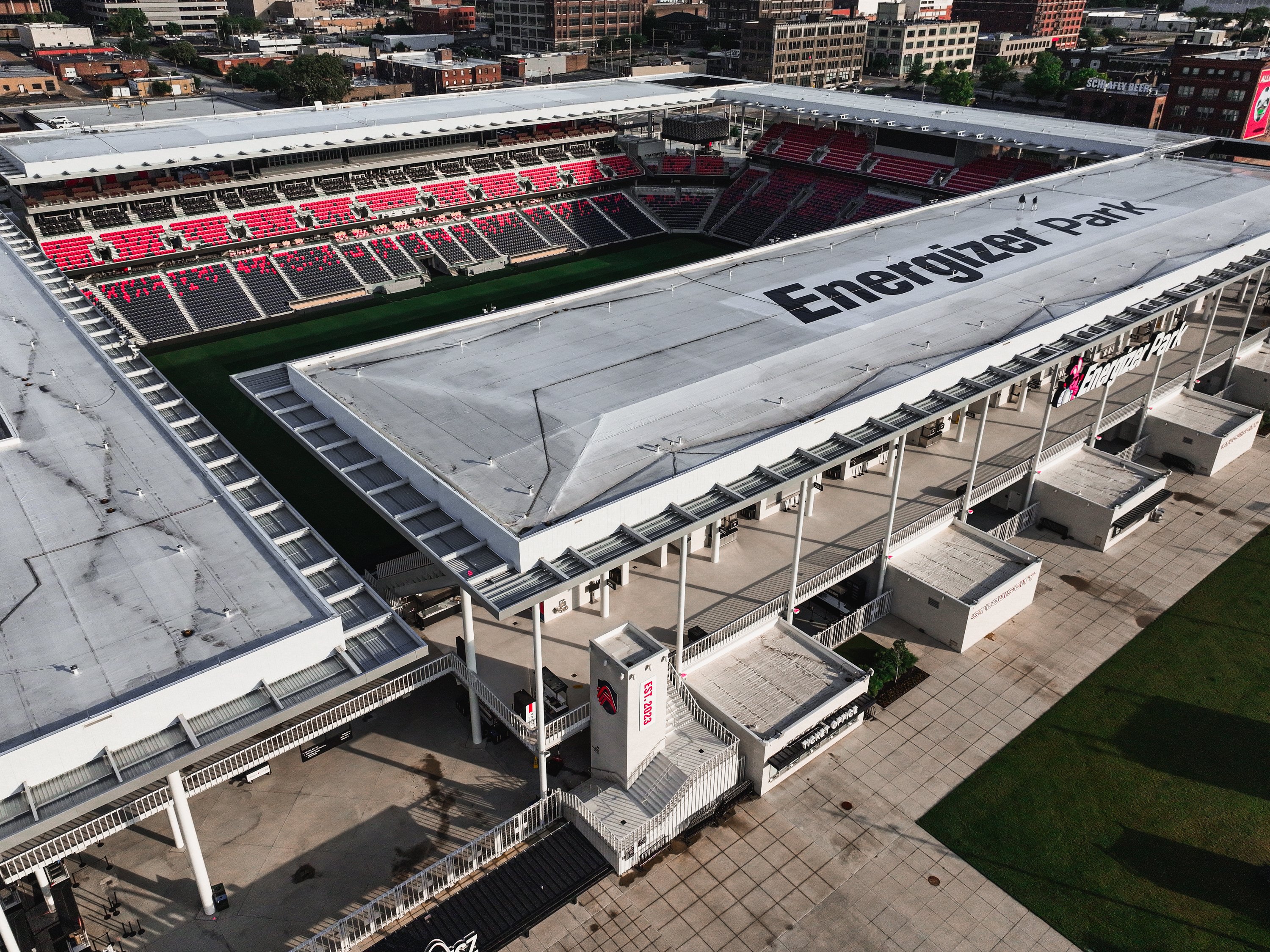 El Energizer Park, sede del St. Louis City SC de la Major League Soccer, es uno de los estadios más modernos del país. Inaugurado en noviembre de 2022, cuenta con una capacidad para 22,423 espectadores y fue diseñado para ofrecer una experiencia única tanto para jugadores como para aficionados. Cada asiento se encuentra a menos de 36 metros del terreno de juego, lo que garantiza una cercanía impresionante con la acción en el campo. El estadio, además, cuenta con una cubierta traslúcida que protege del sol y la lluvia sin obstaculizar la visibilidad ni afectar el césped natural tipo Bermuda.