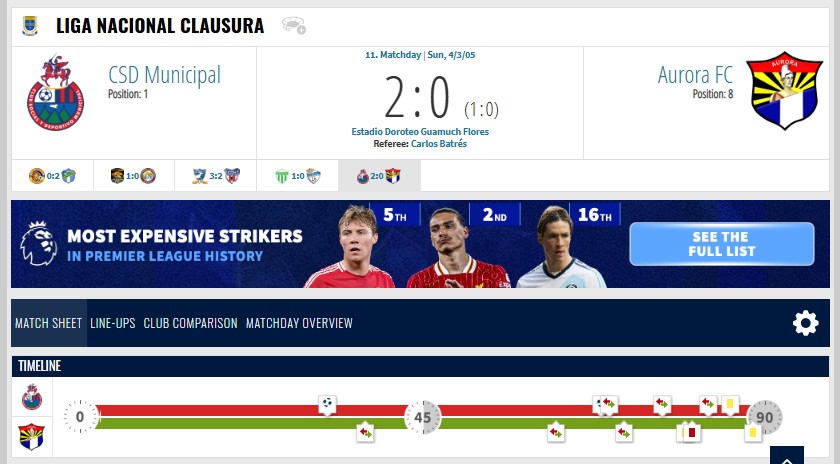 Dentro de las alineaciones de ese último duelo entre los "Rojos" y Aurinegros", Municipal destacaba con el portero Nicolás Días; los defensores Henry Medina, Selvin Ponciano, Germán Ruano y Pablo Melgar; en el medio campo estaban Claudio Albizuris, Carlos Figueroa, Gonzalo Romero y Julio Girón; por último, en la delantera aparecieron Juan Carlos Plata y Mario Acevedo, los autores de los goles.