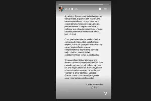 "Agradezco de corazón a todos los que me han apoyado y a quienes me exigen ser una mejor persona. Lamento profundamente cualquier confusión o malestar que mis palabras recientes causaron: nunca fue mi intención limitar, herir ni dividir", expresó el jugador del Guadalajara.