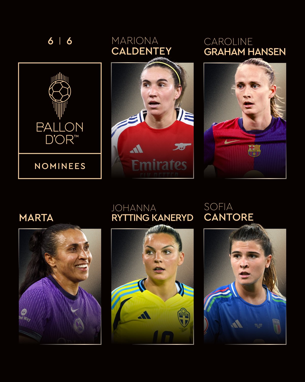 La brasileña Marta, emblema del futbol femenino y recientemente proclamada campeona de la Copa América, regresa a la lista de candidatas al Balón de Oro, en la que figuran las españolas Aitana Bonmatí, ganadora de las dos últimas ediciones, y Alexia Putellas, vencedora en 2021 y 2022, más cinco jugadoras inglesas.