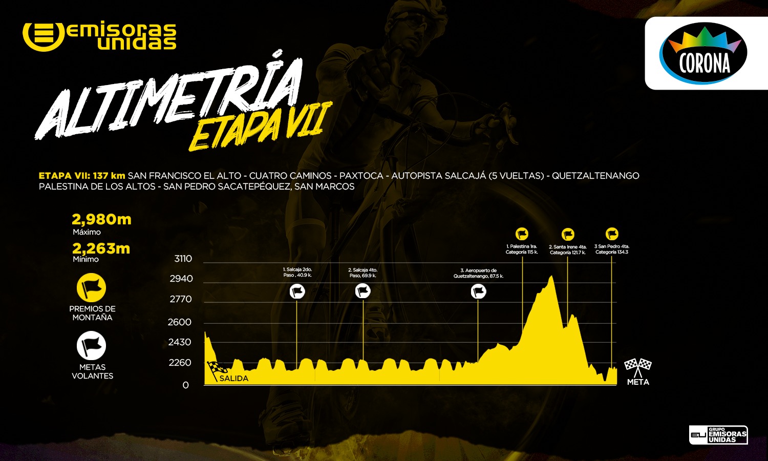 Este jueves 30 de octubre, la Vuelta a Guatemala 2025 entra en su fase decisiva con la disputa de la séptima etapa, un recorrido de 137 kilómetros que promete emociones fuertes y paisajes espectaculares. La jornada partirá desde San Francisco El Alto y tendrá su línea de meta en San Pedro, San Marcos, en una ruta exigente que combinará tramos planos, repechos y duros ascensos de montaña, claves para los aspirantes al título.