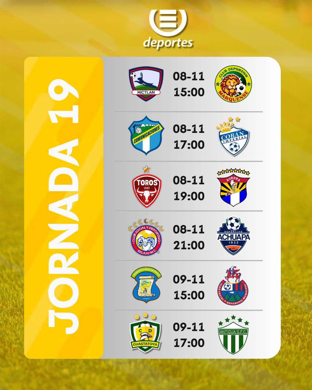 La fecha 19 del Torneo Apertura 2025 de la Liga Nacional se jugará este sábado 8 y domingo 9 de noviembre con las miradas puestas en Selección de Guatemala. Esta jornada, Antigua y Aurora buscan sellan matemáticamente su boleto a cuartos de final, y Comunicaciones luchará por salir de la última casilla, mientras que su rival eterno, Municipal, intentará seguir en la cima de la competición.