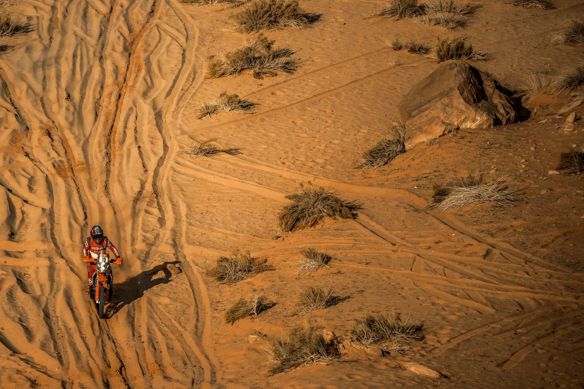 Esta será la etapa más larga del Dakar, sin duda, la más emocionante para los apasionados de las dunas. El recorrido del día transcurrirá especialmente en el sector de Qassim, donde se dan cita los amantes del todo terreno saudís. Los cordones de dunas se extienden hasta perderse de vista, a veces separados por un valle, donde se sigue rodando sobre la arena, a lo largo de toda la especial.