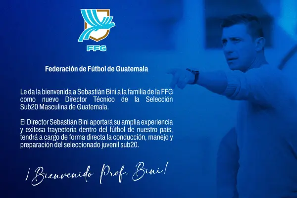 "La Federación de Futbol de Guatemala le da la bienvenida a Sebastián Bini a la familia de la FFG como nuevo director técnico de la Selección Sub-20 masculina de Guatemala", anunció la propia Federación la tarde de este jueves 29 de enero de 2026 mediante sus redes sociales.