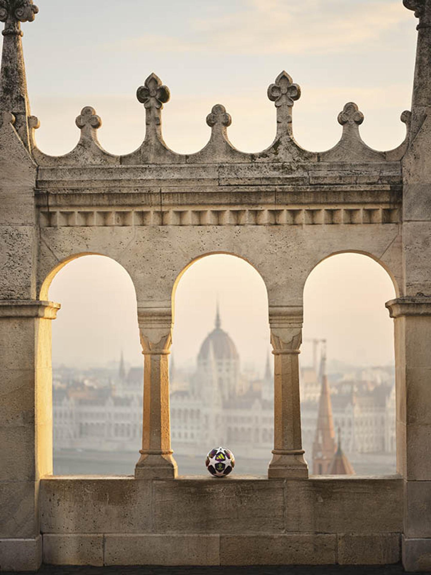 El diseño del balón destaca por su equilibrio entre contraste y armonía, dos elementos que definen la identidad de la ciudad anfitriona. Su sistema gráfico se inspira en formas líquidas y en la tradición del Art Nouveau, muy presente en la arquitectura y el patrimonio artístico local. A esto se suma una paleta de colores vibrantes que busca capturar la riqueza visual y cultural de Budapest, ofreciendo una estética moderna sin perder el vínculo con la historia.