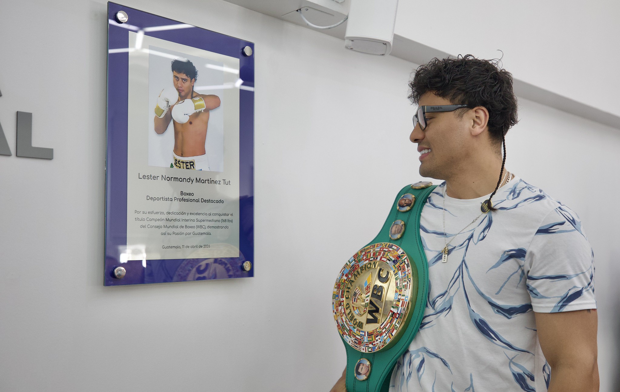 El boxeador guatemalteco Lester Martínez vivió un momento especial este sábado 11 de abril al ser condecorado con su ingreso al Salón de la Excelencia del Palacio de los Deportes, ubicado en la zona 5 de la Ciudad de Guatemala. Este reconocimiento llega tras su reciente hazaña del 21 de marzo de 2026, cuando conquistó el título de campeón mundial interino de peso supermediano del Consejo Mundial de Boxeo, consolidándose como una de las máximas figuras del deporte nacional.
