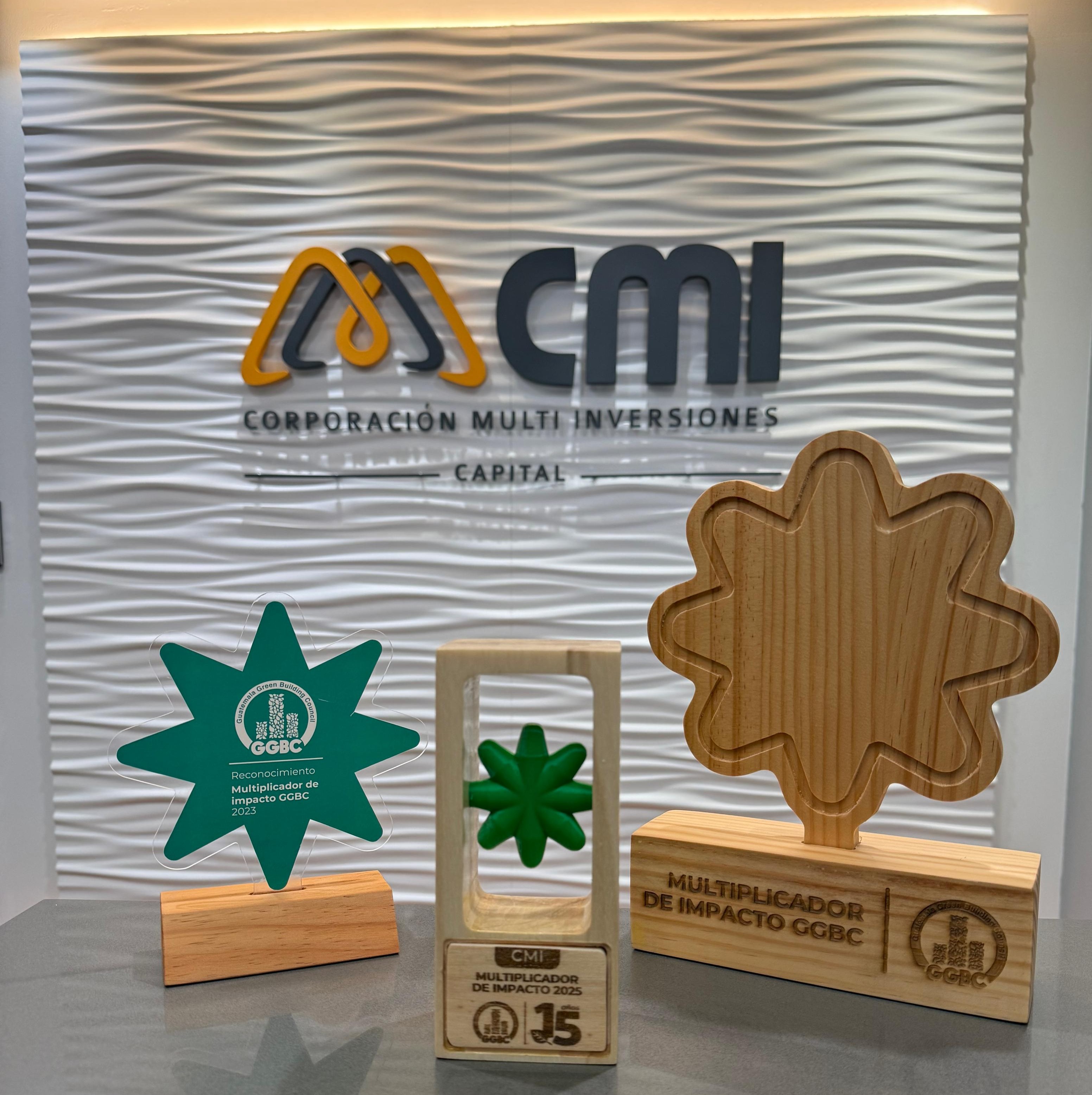 CMI, Corporación Multi Inversiones, a través de su agrupación de negocio CMI Capital, fue reconocida por tercer año consecutivo por el Guatemala Green Building Council (GGBC) con el galardón "Multiplicador de Impacto", una distinción que resalta a las empresas que impulsan la sostenibilidad, la innovación y la construcción responsable en el país.
