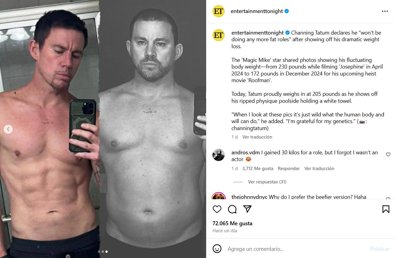 A través de una publicación en redes sociales, Channing Tatum habló de los proyectos en los que se le han exigido subir y bajar considerablemente de peso.