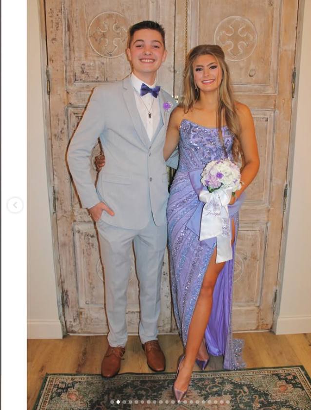 La joven eligió un elegante vestido lila de la reconocida marca Sherri Hill, que resaltaba su estilo sofisticado y juvenil.