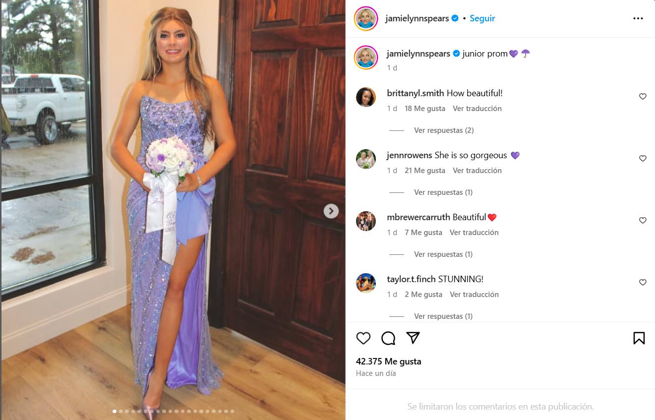 Jamie Lynn Spears compartió en sus redes sociales uno de los momentos más importantes en la vida de su hija, quien asistió a su baile de graduación.