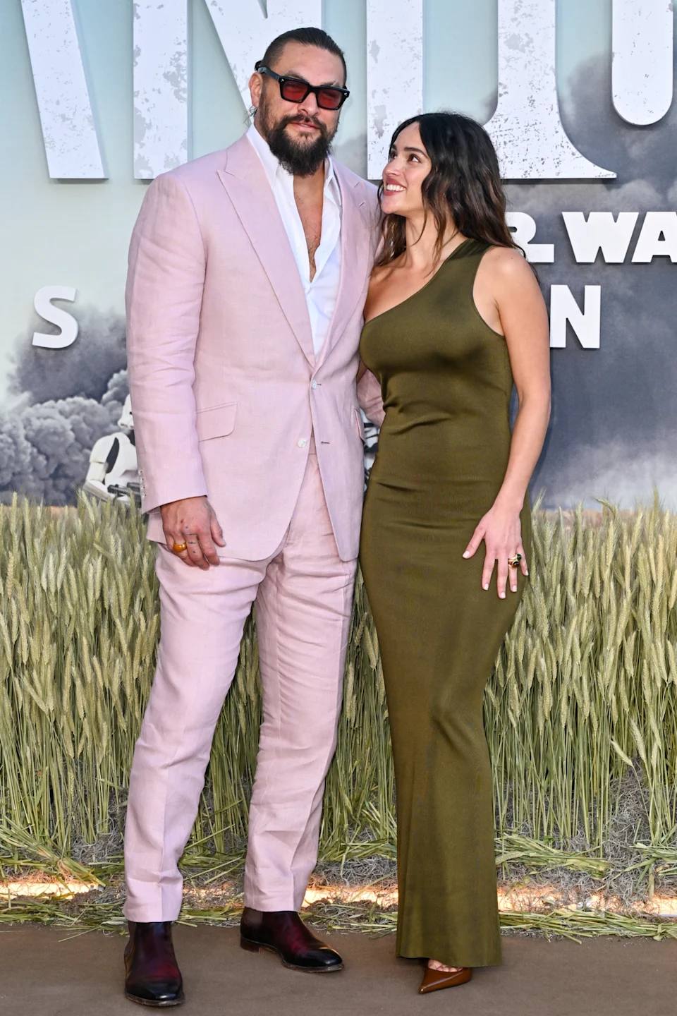 Jason Momoa optó por un estilo más suave, con un traje en un delicado tono rosa. Su blazer de botonadura sencilla presentaba solapas pronunciadas.