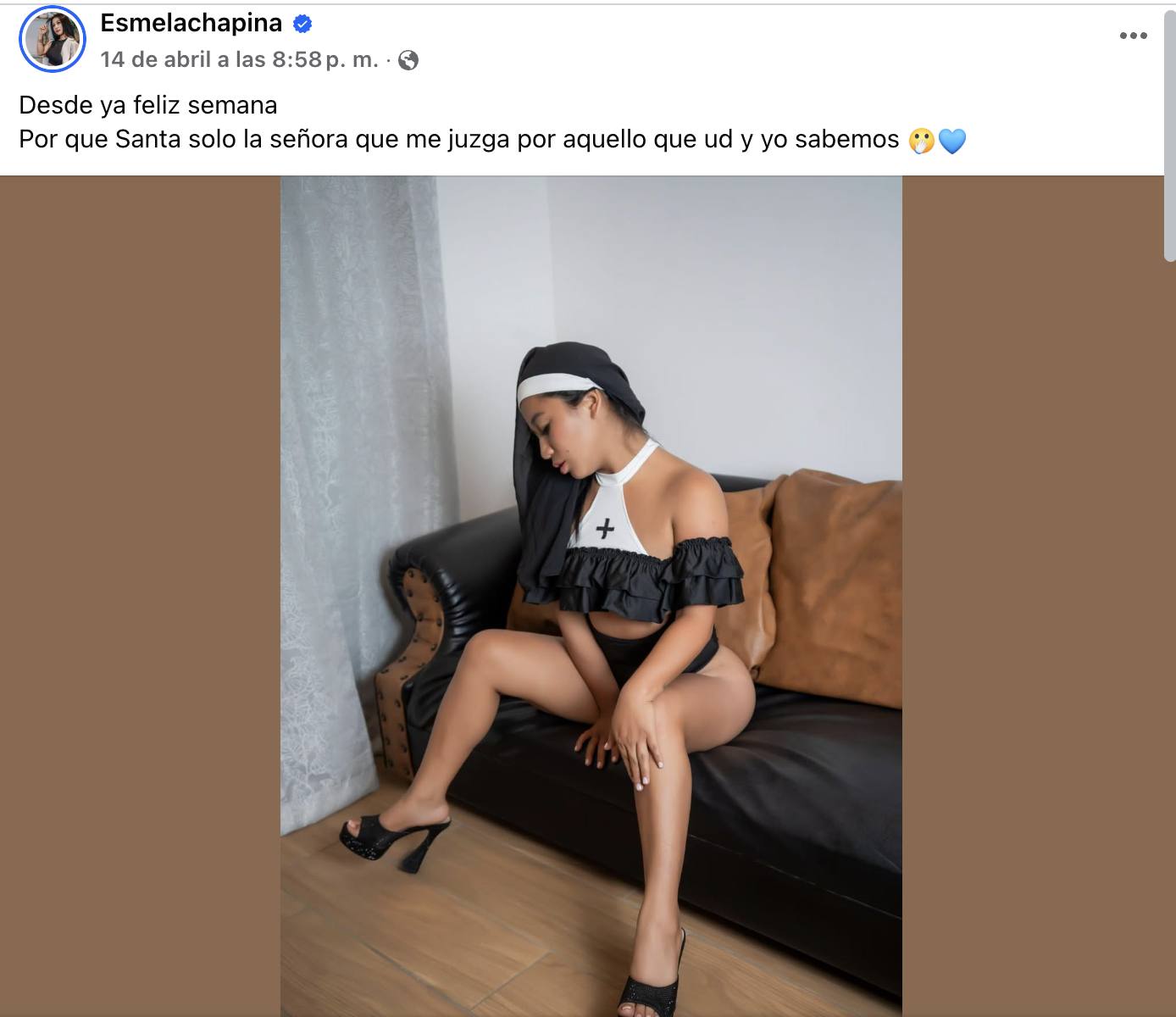 Cabe destacar que, en la imagen, Esme La Chapina aparece utilizando un escándaloso atuendo de monja. Como era de esperarse y de forma inmediata, los comentarios se hicieron presentes, mientras algunos le aplaudieron otros la llenaron de críticas.