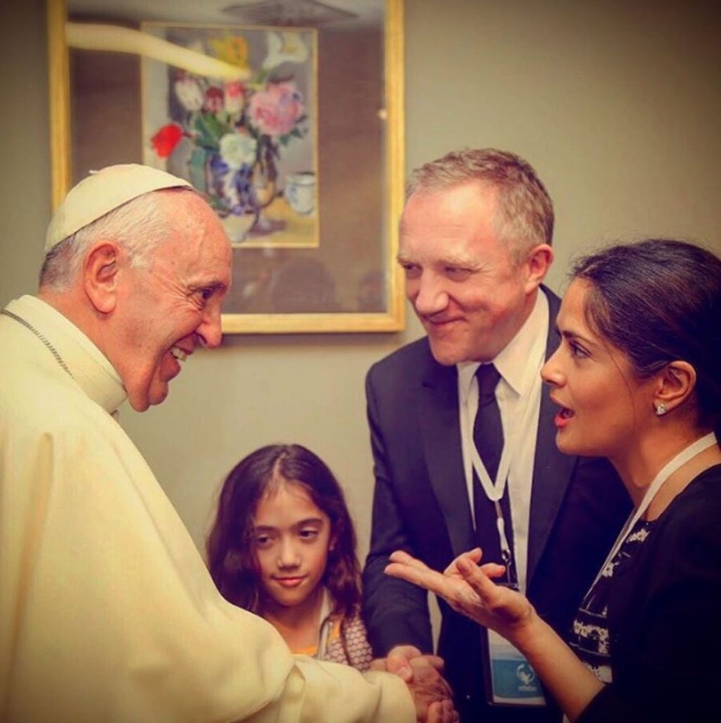 Las demás celebridades que estrecharon la mano del Papa Francisco son: Leonardo DiCaprio, Antonio Banderas, Richard Gere, Salma Hayek, George Clooney, Mark Walhberg, Sylvester Stallone, Robert Redford, Eva Longoria, J Balvin, Madonna, Arnold Schwarzenegger, La Reina Isabel II y Los Pimpinela, son solo algunos de ellos.