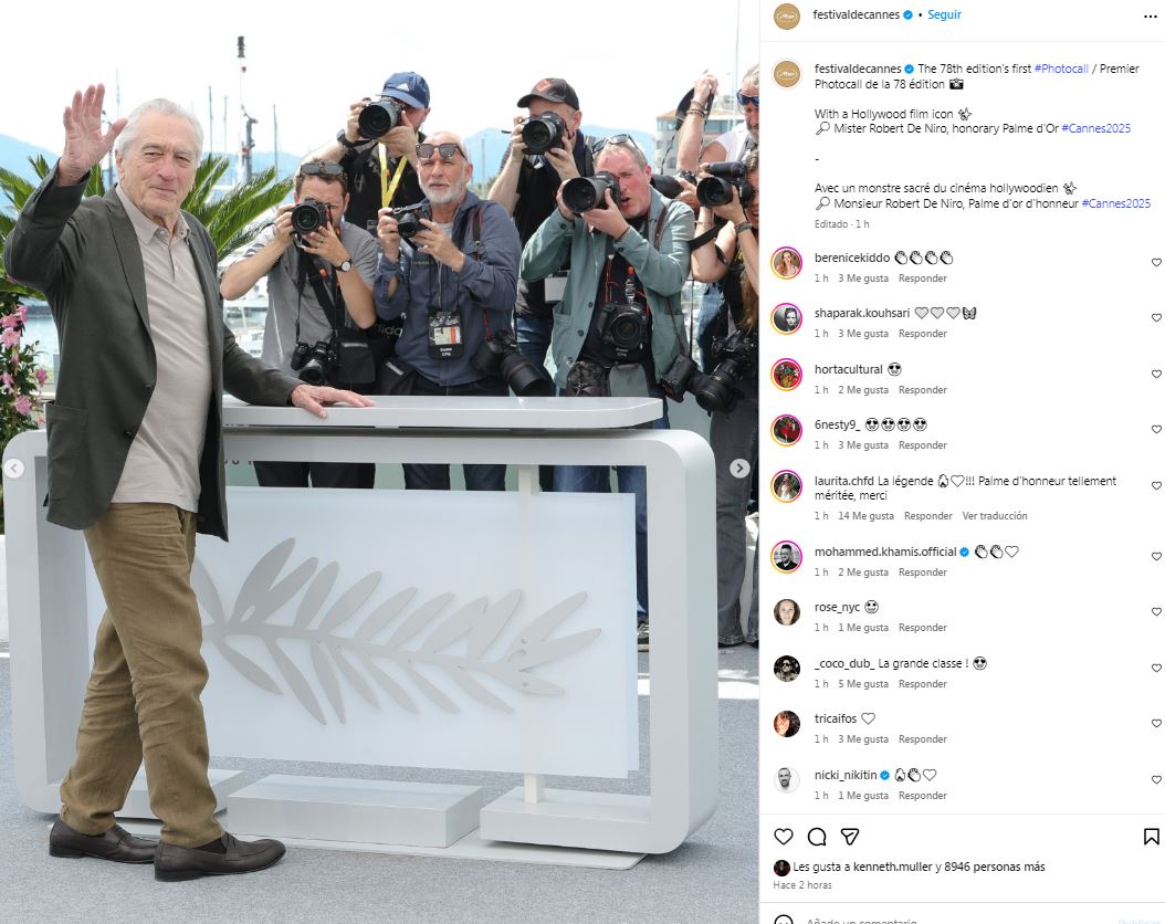 Tras su asistencia al Festival de Cannes, el actor dio de qué hablar tras lucir juvenil y con buena salud a sus 81 años. "Realmente luce sensacional para su edad", "Ni parece que tuvo cáncer", "Wow qué bien se mira De Niro", "Sin duda ser papá a los 80 años le dio nueva vida", fueron algunas reacciones de los cibernautas.