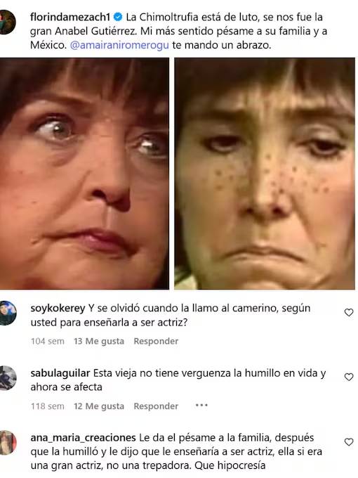 - "Le da el pésame a la familia después que la humilló y dijo que le enseñaría a ser actriz. Ella sí era una gran actriz, no una trepadora. Qué hipocresía", fueron algunos de los comentarios.