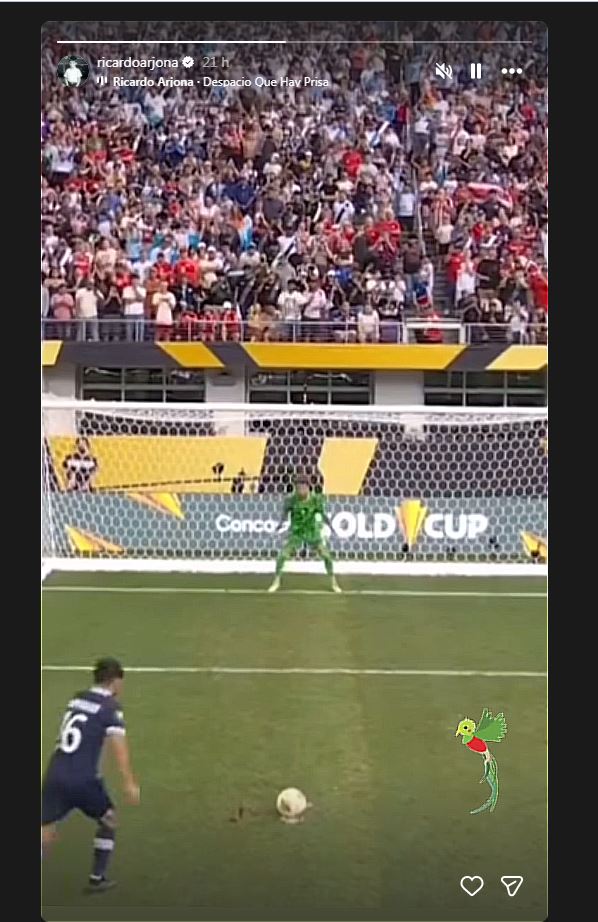 A través de sus historias, Ricardo Arjona publicó un mensaje festivo que mostraba el momento de los penales. Al lado colocó una imagen de El Quetzal, ave nacional de Guatemala.