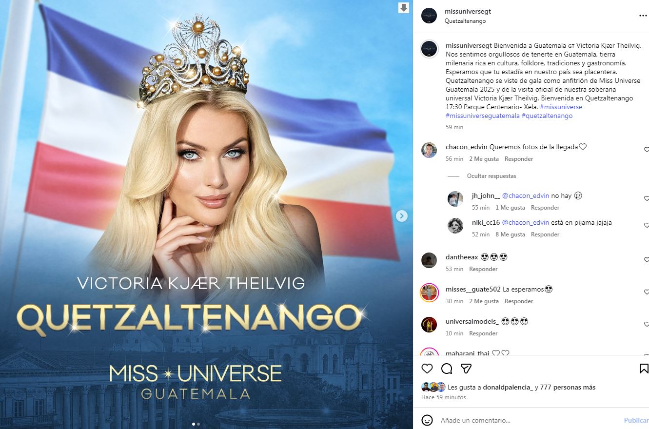 La actual Miss Universe, Victoria Kjær Theilvig de Dinamarca, ha llegado a Guatemala para ser parte de la gala de elección y coronación de Miss Universe Guatemala 2025.