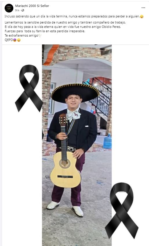 Tras la confirmación del deceso, el perfil oficial del Mariachi 2000 Si Señor en Facebook publicó un mensaje de duelo para despedir a su compañero.