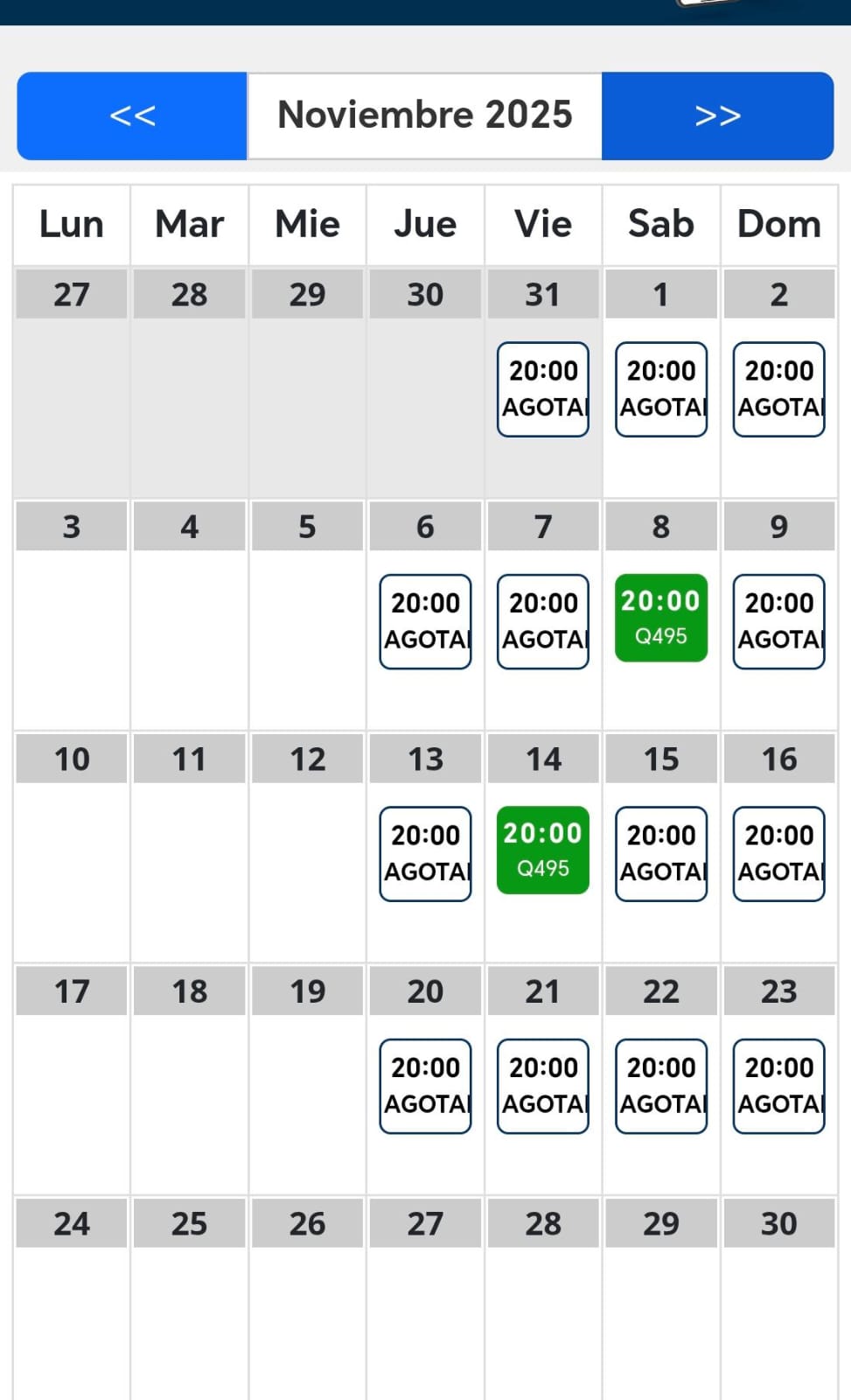 · Noviembre: sábados y domingos los días 1, 2, 6, 7, 8, 9, 13, 14, 15, 16, 20, 21, 22 y 23