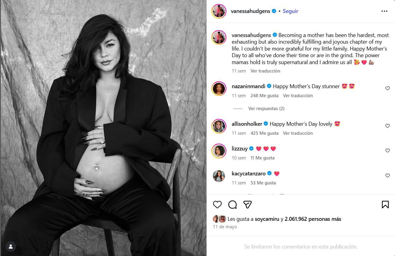 Vanessa Hudgens anunció su primer embarazo de la forma más llamativa posible. Lo hizo en la alfombra roja de la gala de los Oscar de 2024, por la que desfiló con un ajustado vestido negro que marcaba su panza de embarazada y posó para los fotógrafos sujetándosela con las manos.