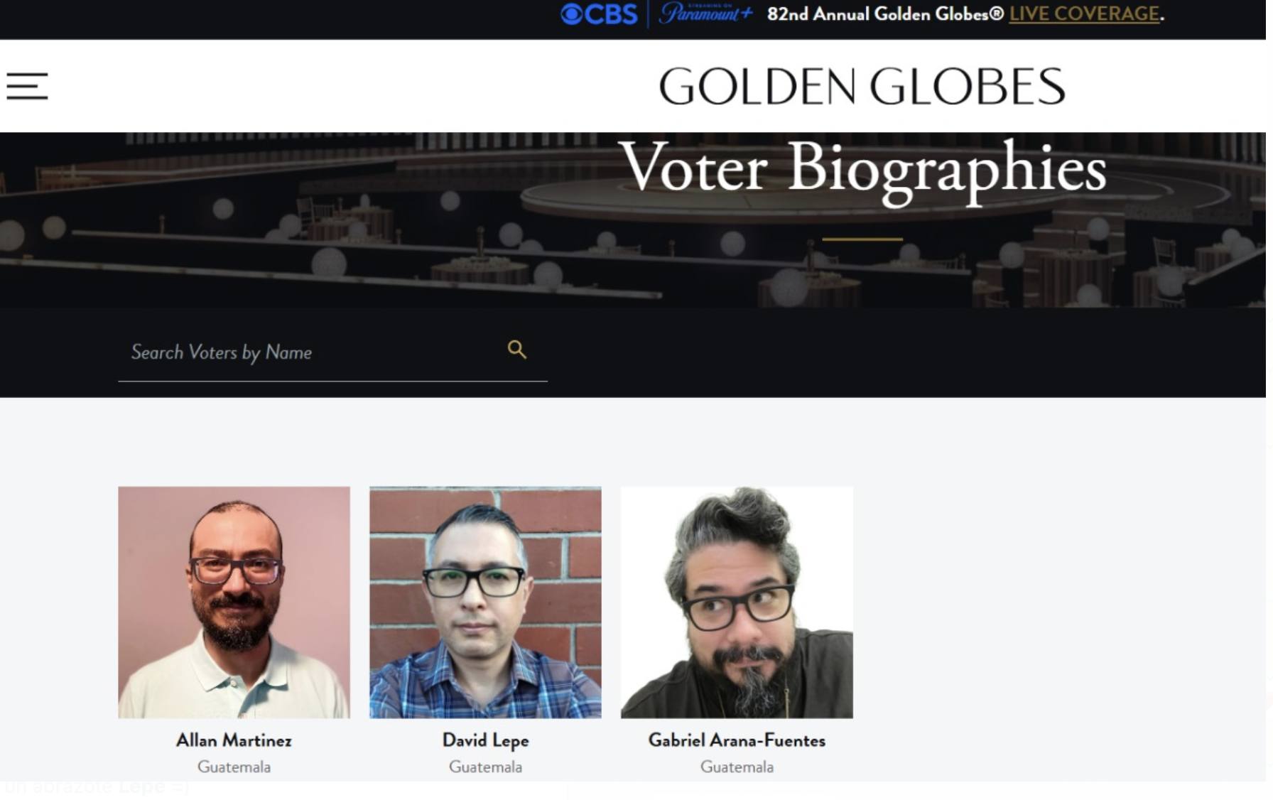 Los Golden Globes han confirmado que tres guatemaltecos formarán parte de su cuerpo de votantes en la próxima edición del prestigioso galardón de Hollywood. En esta ocasión, los famosos premios se llevarán a cabo el próximo 11 de agosto del próximo año.