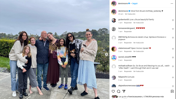 El acompañamiento familiar ha sido constante durante este proceso. Además de Mabel y Evelyn, Willis es padre de Rumer, Scout y Tallulah, fruto de su matrimonio anterior con la actriz Demi Moore. Tanto Moore como las hijas mayores han mostrado su apoyo público en diversas ocasiones.