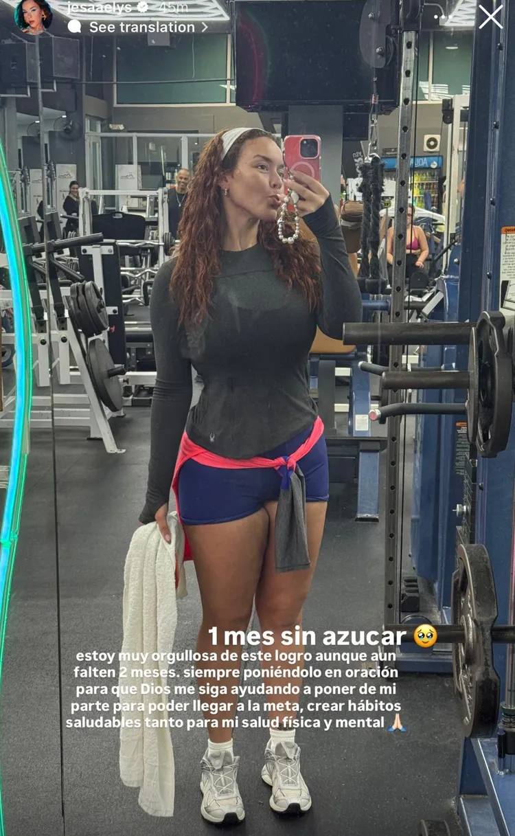 "Un mes sin azúcar, estoy muy orgullosa de este logro, aunque aún me faltan dos meses, siempre poniéndolo en oración para que Dios me siga ayudando a poner de mi parte para lograr llegar a la meta, crear hábitos saludables para mi salud física y mental", dijo en la publicación dejando claro que este proceso apenas comienza.