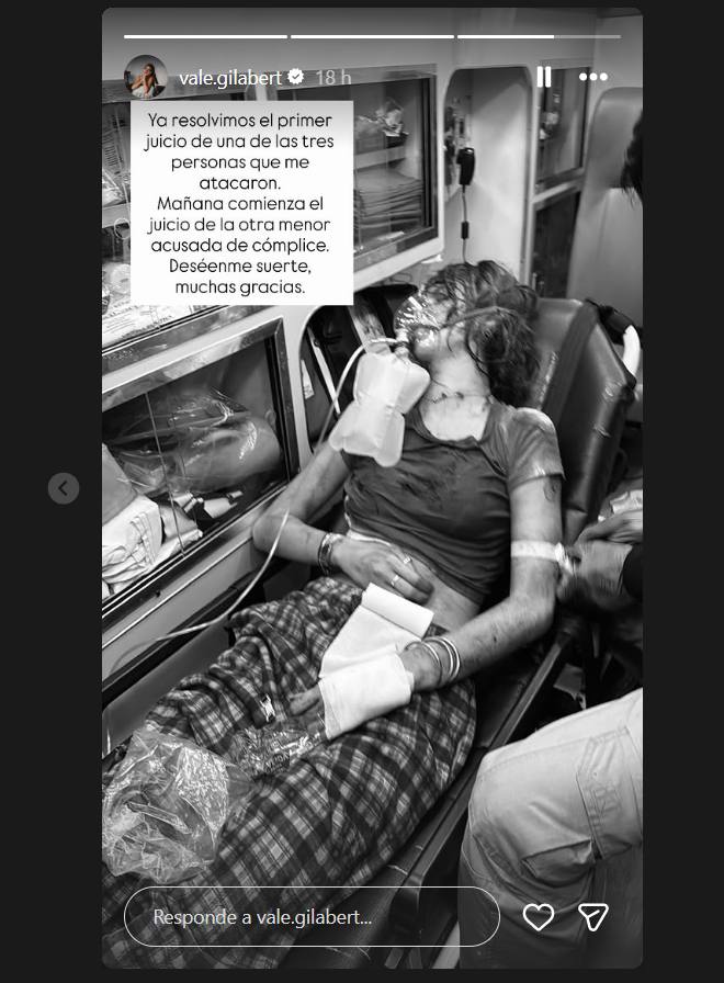 En un mensaje agregado en la fotografía, Valentina Gilabert anunció que ya se resolvió el primer juicio de una de las tres personas que participaron en su ataque.