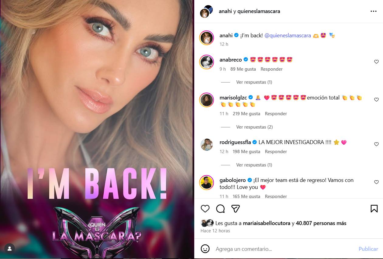 "I'm back" (Estoy de vuelta). Esa fue la frase con la que Anahí dio a conocer su regreso como investigadora del programa.