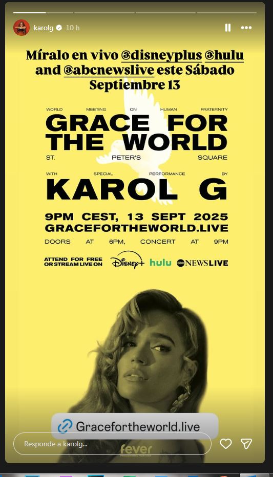 El 13 de septiembre de 2025 podrá marcarse como un día clave en la historia reciente del Vaticano: la Plaza de San Pedro acogerá un macroconcierto titulado "Grace from the World" ("Gracia para el Mundo"), que reunirá a estrellas de la música internacional como Karol G, Andrea Bocelli y Pharrell Williams, entre otros.
